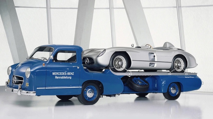Для своего Renntransporter («Голубое чудо») Мерседес использовал элементы от других своих моделей. Сейчас уникальный экземпляр можно увидеть в музее Mercedes-Benz, но это не оригинал, а воссозданный по фотографиям в 1990-х годах автотрейлер. Оригинал был уничтожен в 1967 году.