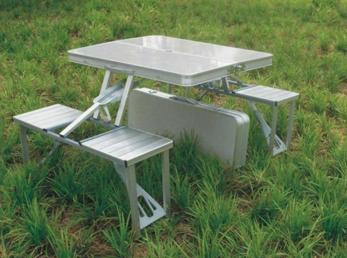 Конечно, многие привыкли к тому, что пикник - это скатерть или покрывало на земле, на котором будут расставлены тарелки и всем придётся сидеть. Но не обязательно мёрзнуть на земле, которая ещё не совсем прогрелась, можно взять с собой раскладную мебель, которая не займёт много места в автомобиле. Такие варианты столов и табуретов, как правило, продаются по отдельности, но есть и совмещённые, очень удобные варианты. Некоторые из этих трансформеров сразу продаются сложенными в виде чемодана, который будет необходимо просто раскрыть и установить на землю. Современные материалы тоже защищены от влаги и грязи, это алюминиевые ножки, а сама столешница из ламината. Обычно длина в сборном виде не превышает ста сантиметров, вес - десяти килограмм, а сесть за столом могут четыре человека.