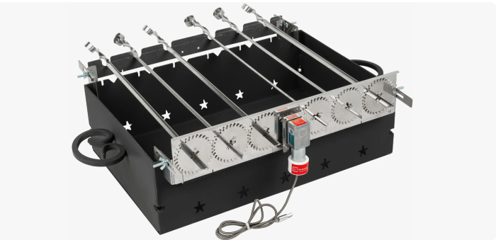 Какой пикник без шашлыков и многие уже приобрели разнообразные удобные и современные мангалы, в которых удобно готовить, а потом и правильно утилизировать пепел, даже со складными ножками. Но иногда бывает настолько лень стоять и жарить шашлык, что хочется от этих приспособлений ещё и автоматики. Для этого есть автоматические шампуры. Мясо, как известно, необходимо постоянно переворачивать, чтобы оно пропеклось равномерно и обрело корочку и красивый цвет. Но не обязательно теперь следить за ним без передышки, есть варианты от пяти до девяти шампуров, которые будут вращаться сами по себе. Работают они на заряжающихся многоразовых батарейках и вращаются автономно на любом мангале за счёт электропривода. Важно лишь посматривать время от времени, чтобы мясо не пережарилось и не стало сухим, совсем оставлять без внимания мангал, конечно же, не стоит.