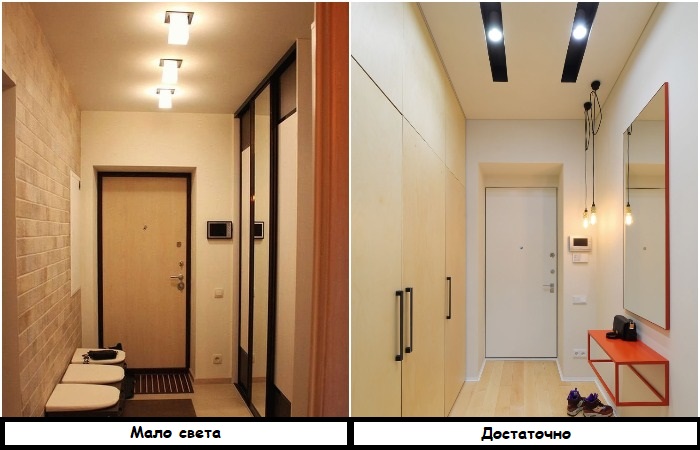 Прихожая редко отличается большими габаритами, к тому же сюда не попадает естественный свет. Поэтому важно установить здесь достаточное количество светильников, которые избавят комнату от темных углов и сделают ее максимально удобной. Об это желательно подумать еще на этапе ремонта, так как потом с проводкой уже ничего не получится сделать.