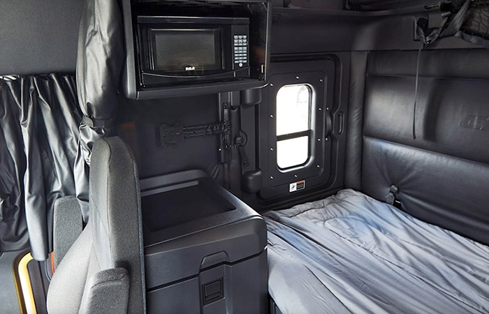 Причина простая: американские дальнобойщики проводят в дороге недели. Рейс в обе стороны может занять 10–12 дней, и всё это время человек фактически живёт в кабине. Останавливаться в мотеле дорого, а иногда просто негде, поэтому производители продумывают комфорт до мелочей. Даже стандартные розетки на 110 вольт — часть этой системы, а кто-то тянет внутрь оптоволокно или ставит Starlink, чтобы иметь стабильный интернет в пути. Не редкость и кофеварки, и игровые приставки, всё зависит только от фантазии и бюджета владельца. Есть даже модульные системы для самостоятельной доработки интерьера. Заказчик может выбрать, какие элементы ему важнее: большое спальное место, многофункциональная кухня или рабочее место с монитором. Некоторые компании строят кабины по индивидуальному заказу, с отделкой деревом, кожаной обивкой и освещением, как в гостиничном номере. Такой «апгрейд» может стоить десятки тысяч долларов, но для профессионального водителя он окупается комфортом и снижением стресса.