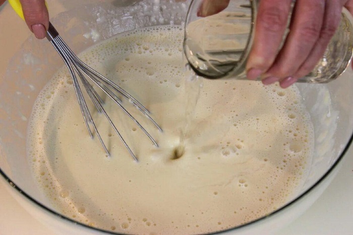 Обратите внимание, что соль и сахар нужно смешивать именно с яйцами, а не сыпучими ингредиентами, иначе они не успеют раствориться. Если вы готовите блины на дрожжах, то обязательно добавьте в опару немного сахара, чтобы микроорганизмы начали быстрее работать.