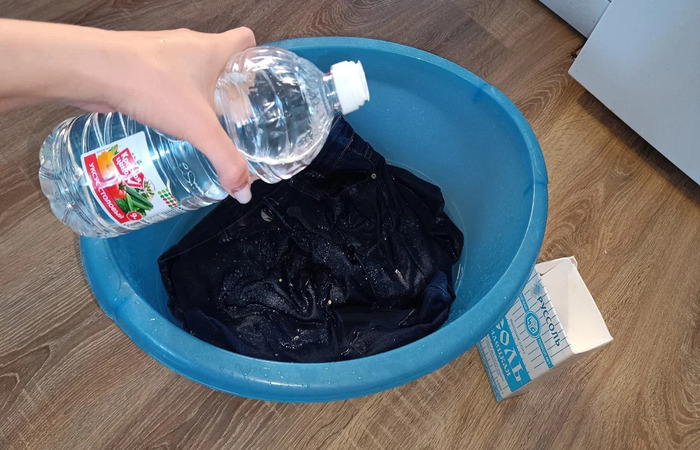 Если вы хотите сохранить цвет джинсов надолго, запоминайте проверенный десятилетиями совет. В тазике с водой следует растворить соль и уксус. В полученном растворе замачивайте новые джинсы на час. После чего хорошо прополощите их и высушите. Такое действие позволит вам намного дольше наслаждаться насыщенным цветом ваших джинсов. Только запомните, этот совет не подходит для черных джинсов. Для черных вещей у нас подготовлены отдельные советы.