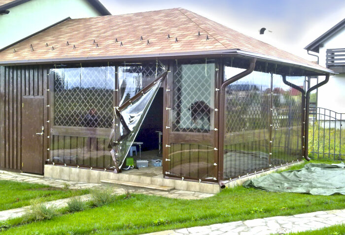 Но вот минусы — это практически отсутствие шумоподавления и низкая теплоизоляция, а срок службы довольно непродолжительный. И даже если снимать мягкие окна на зиму и в непогоду, убирать в сухое место, через пять лет они придут в негодность. А прозрачность при этом будет недостаточная, поскольку плёнка не может оставаться идеально ровной, а повредить её крайне легко.