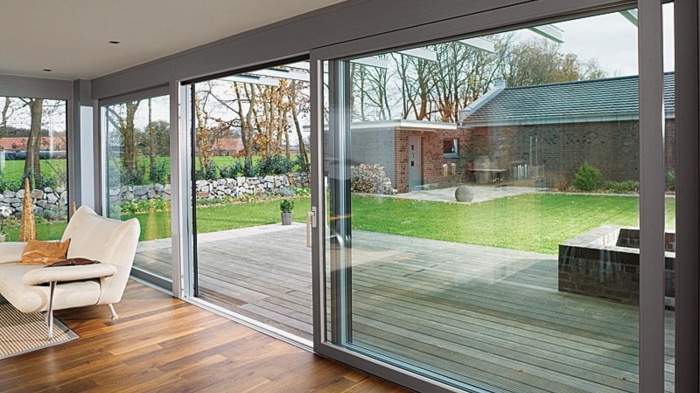 К плюсам относится расширение пространства террасы, ведь такие окна раскрываются полностью, и помещение на улице и под крышей становятся одним. Раздвигаются он очень легко, к тому же есть вариант открывать их частично. Имеют отличную теплоизоляцию, а порожка нет, благодаря этому можно спокойно передвигаться между улицей и террасой с подобным типом окон.