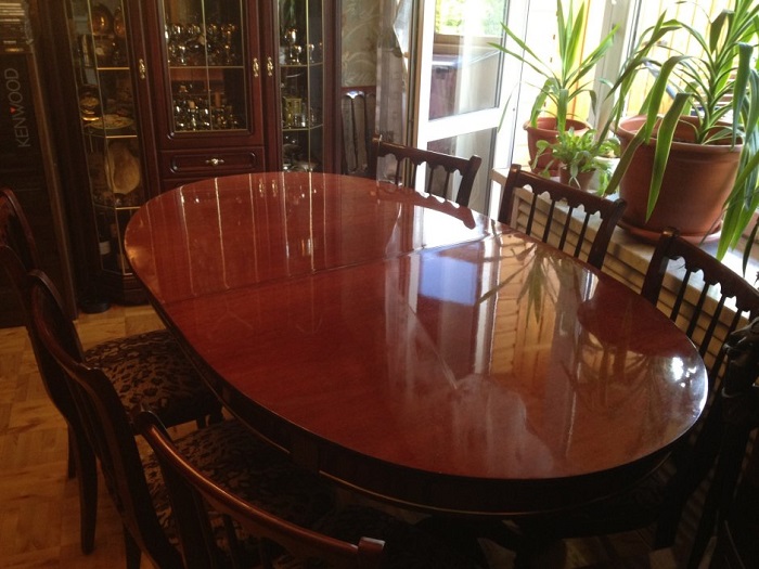 В 80-х квартиры были заставлены массивной мебелью, которая должна была наглядно продемонстрировать статус владельца. Громоздкие шкафы, комоды, мебельные стенки, которые занимали большую часть комнаты – все это было неизменной составляющей советских квартир. В 90-х габариты мебели не слишком изменились, но она стала лакированной. Натуральное дерево и зеркальный блеск поверхностей стали главными трендами, поэтому люди активно старались наполнить свою квартиру именно такой мебелью (отсюда и бесконечные очереди на блошиных рынках).