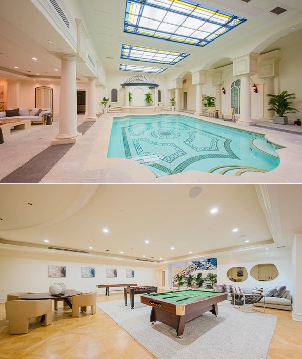 Бассейн в окружении колонн и игровая комната в St. Pierre в Лос-Анджелесе (США).