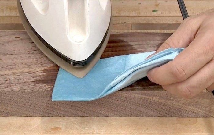 Накройте вмятину салфеткой и прогладьте горячим утюгом. / Фото: fotoblur.ru