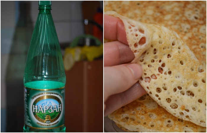 Блины на минералке получаются ажурными, с красивыми дырочками