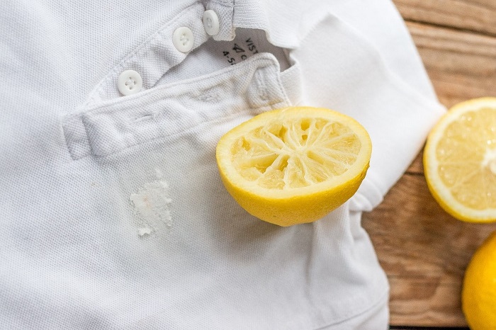 Если на черной одежде остаются светлые пятна, то на белой – желтые. Они появляются из-за пота, смешанного с дезодорантом, и далеко не всегда отстирываются порошком. Отчаялись привести вещи в порядок? Попробуйте обработать пятна лимонным соком, который обладает мощными отбеливающими свойствами. Сразу следует сказать, что это средство подходит для удаления только свежих пятен, а вот с застарелыми вряд ли справится.
