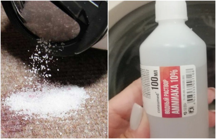 Не менее эффективным против желтых пятен является тандем соли и нашатырного спирта. Налейте в миску стакан теплой воды, добавьте одну чайную ложку нашатыря и соли, хорошо размешайте, а после того, как компоненты растворятся, обработайте готовым средством загрязненные участки. Оставьте одежду на 15 минут, после чего постирайте ее в стиральной машине. Имейте в виду, что у нашатыря достаточно едкий запах, поэтому лучше всего работать в масках, перчатках и открыть в комнате окно.