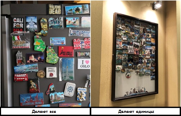Мы часто привозим магниты из путешествий, принимаем их в дар от своих друзей, которые были в отпуске или в командировке. Они навевают нам теплые воспоминания о памятных событиях, их хочется рассматривать и мечтать вернуться в те места, где нам было хорошо. В самих магнитах нет ничего плохого, основной вопрос возникает к их месторасположению. Обычно мы вешаем их на холодильник и, тем самым, создаем визуальный беспорядок. Даже если вы только что убрали на кухне, ощущение бардака никуда не денется как раз из-за того, что на холодильнике висит огромное количество магнитов.