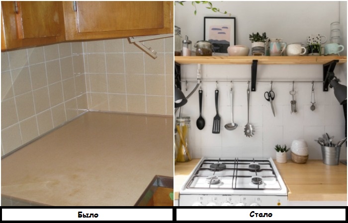 Если для вас это слишком затратно, и вы не планировали в ближайшее время делать даже такой минимальный ремонт, просто покрасьте плитку в нейтральный цвет, например, белый. Также можно обклеить фартук специальной пленкой – существует множество дизайнов и расцветок, поэтому вы без проблем сможете выбрать подходящее изделие.