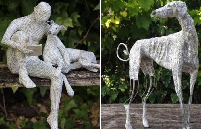 Художники начали создавать уникальные скульптуры из старых газет. За основу они берут проволочный каркас. А уже сверху с помощью папье-маше обклеивают каркас и создают невероятные скульптуры из обычных газет.