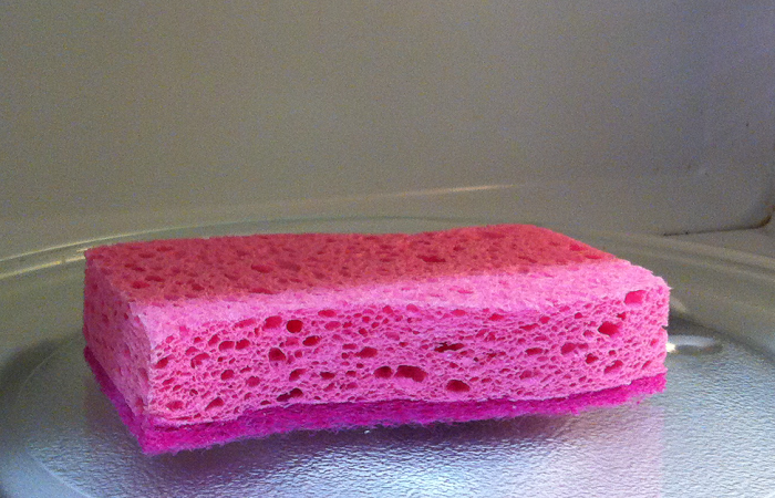 Мы предлагаем попробовать второй вариант. Все, что вам нужно – смочить губку, хорошо отжать ее и положить в микроволновку на две минуты. Этого времени вполне хватит для того, чтобы на губке не осталось никаких бактерий, и вы смело могли мыть ею посуду.