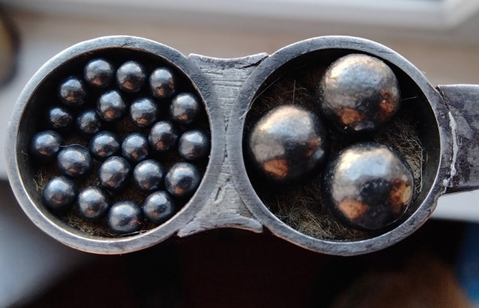 В отличие от охотничьих патронов, где обычно применялась дробь или пуля в зависимости от цели, родезийский снаряжали своеобразным «миксом». В одной гильзе могли быть мелкая и крупная картечь, металлические обломки или даже подшипники — всё, что обеспечивало хаотичное, но плотное поражение на короткой дистанции. Причём самая крупная картечь помещалась в самый низ. Такой состав позволял стрелку не думать о точности: важно было просто направить ствол в сторону противника. При выстреле угол разлёта был очень широкий, а урон чрезвычайно большим, особенно в условиях ближнего боя. Применение в засадах и при патрулировании в джунглях делало родезийский патрон особенно эффективным: противник редко оставался в состоянии дать ответный огонь. Не менее важным преимуществом была низкая стоимость производства. Эти патроны могли собирать кустарно, без сложных прессов и машин, что делало их крайне удобными в условиях ограниченного доступа к промышленным ресурсам.