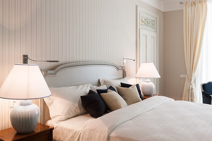Наверняка вы знаете о том, что стилисты советуют девушкам покупать одежду с вертикальными линиями, чтобы зрительно вытянуть силуэт, стать выше и стройнее. В случае с потолками вертикальный рисунок работает точно так же. Узкие полосы, неброский узор, выстроенный в линейном порядке, и прочие рисунки, расположенные на обоях вертикально, создают нужную иллюзию высоты.