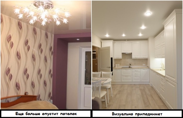 Точечные светильники больше подходят для низких потолков, чем люстра