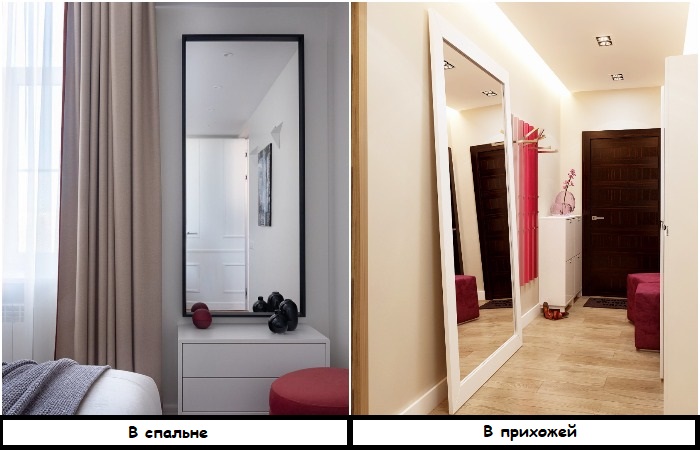 Зеркала нужны не только для того, чтобы показывать ваше отражение. Также они играют очень большую роль в восприятии пространства. Если грамотно их использовать, можно с легкостью скрыть недостатки планировки и несовершенства интерьера. Например, если вы поставите в квартире высокий шкаф с зеркальными дверцами, а также несколько зеркал в полный рост, то сможете увеличить высоту потолка и зрительно расширить пространство.