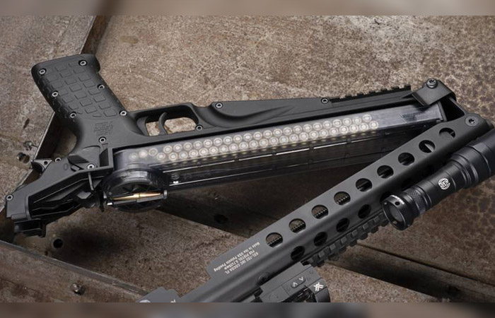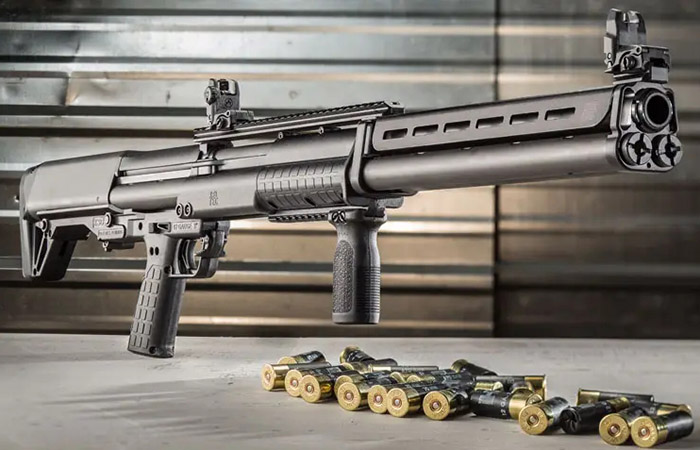 Если нужно представить Kel-Tec с одного взгляда, то это будет KSG. Компактный дробовик в схеме булл-пап, в котором два подствольных магазина расположены рядом. В результате у него 14 патронов 12-го калибра на борту, и стрелок может переключаться между типами боеприпасов простым движением руки. Конструкция получилась настолько компактной, что её можно использовать даже в тесных помещениях — без ущерба для мощности.