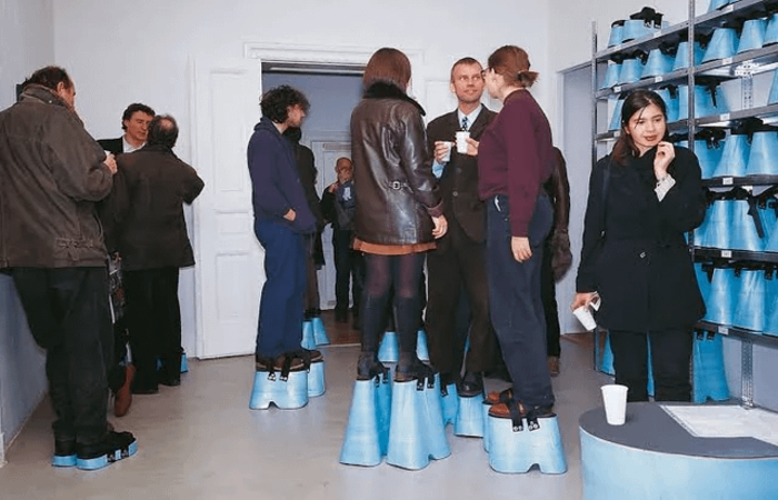 Данное фото сделано на удивительной вечеринке «Люди одинакового роста». Ее организовал художник Хеммерт, и она была устроена в качестве протеста против стереотипов. Всем гостям вечеринки выдавалась обувь на платформе в зависимости от их роста. Это было сделано для того, чтобы все гости стали одинокого роста. Таким образом, художник старался наглядно показать, что равенства можно добиться, стоит только этого захотеть. Снимок с данной вечеринки очень важен в контексте истории.