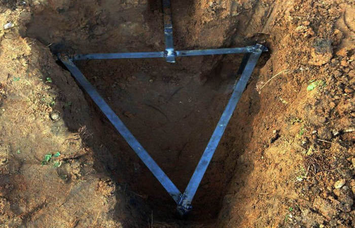 Именно поэтому начиная с советских времен и по сей день в бытовой электрике наиболее широко используется компромиссный вариант с треугольным контуром. Название конструкции говорит само за себя. Чаще всего это стальной треугольник, сваренный или собранный из прутьев длиной не менее 2.5 метра. Единственным недостатком треугольного контура является его площадь. Если дачный участок совсем небольшой, то с установкой такого заземления могут возникнуть известные проблемы. Кроме того, не стоит забывать, что, как и любой другой контур, треугольник должен обязательно вкапываться ниже уровня промерзания почвы. В остальном подобная конструкция сочетает в себе дешевизну, простоту монтажа и относительно высокую эффективность.