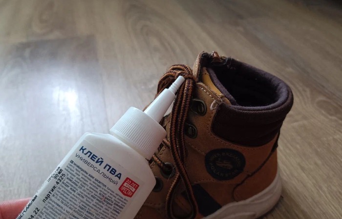 Итак, для начала необходимо завязать шнурки на обуви как обычно. После чего вооружитесь клеем ПВА. Его необходимо точечно нанести прямо в центр узла. Далее нужно немного подождать, чтобы клей полностью высох. Такое простое действие позволит вам надолго забыть про развязанные шнурки.