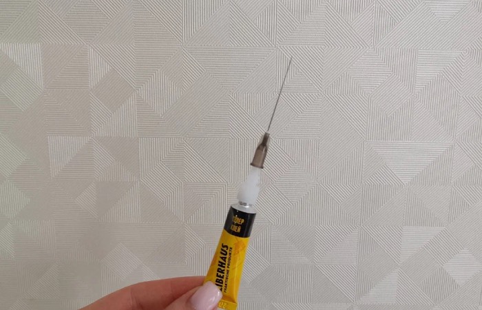 А секрет аккуратного нанесения клея очень прост. Поможет нам в этом иголка от шприца. Именно ее необходимо разместить на тюбик с клеем. Это позволит регулировать количество клея и наносить его локально. Просто попробуйте сами, и вы точно останетесь в восторге.