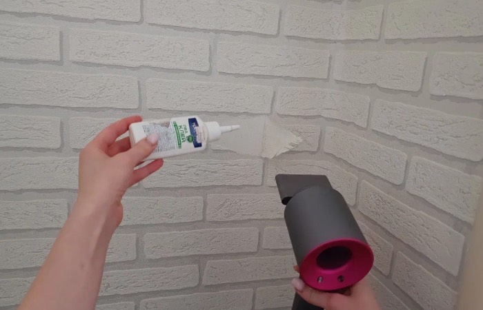 В первую очередь необходимо подготовить клей ПВА и фен. Для начала смазываем оторванную часть обоев клеем. После чего прижимаем ее к стене и придавливаем в течение нескольких минут. Далее необходимо вооружиться феном. Включите его и прогрейте весь участок приклеенных обоев. Именно теплый воздух фена позволит клею стать более эффективным. А ваши обои вряд ли снова отклеятся.