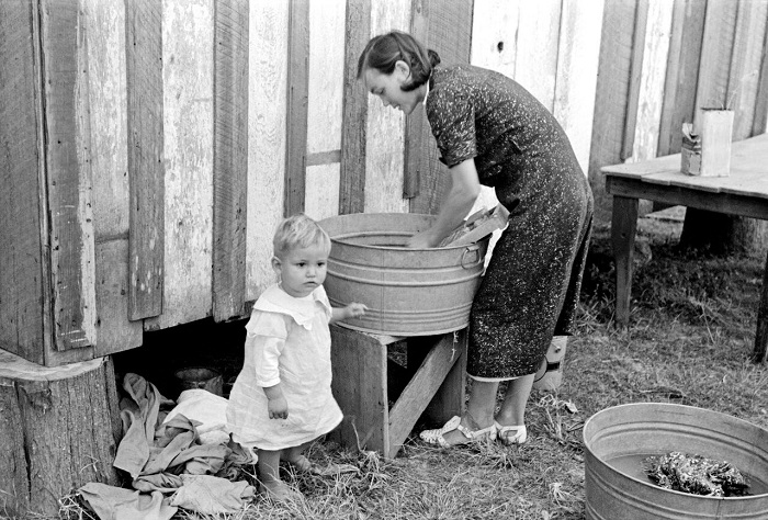 Первые стиральные машины в СССР появились в 1950 году. Тогда на рынке были представлены две модели – «ЭАЯ-2» и «ЭАЯ-3». Они не были автоматическими, да и позволить такую бытовую технику могли далеко не все. Поэтому многие хозяйки по привычке стирали вручную, с помощью ребристой доски и кипячения в больших эмалированных кастрюлях. Но так как за неделю накапливалось большое количество грязной одежды и постельного белья, на это приходилось тратить весь день.