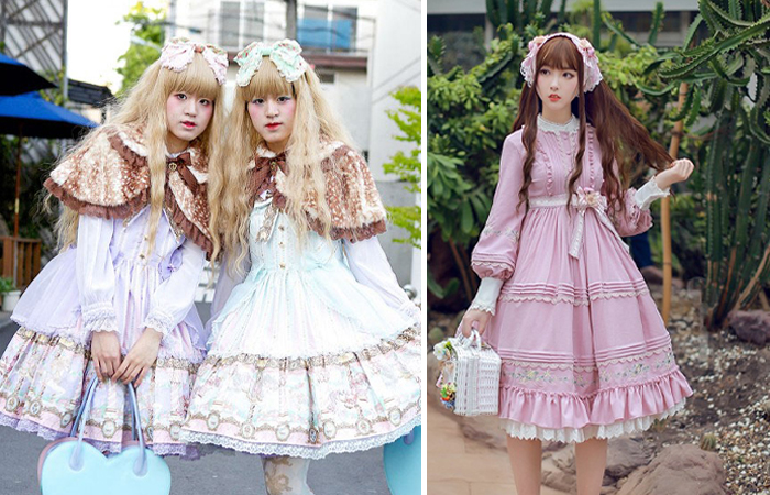 На улицах Японии встретить живую куклу — нормальное явление. Еще в начале 90-х годов девушки стали декорировать свою одежду кружевом, рюшами и бантами. Но к 21 веку эта мода превратилось в настоящее творчество. Японки стали наряжаться не просто в кукольные наряды, а придумывать фантастические образы. Так, в Японии уже существует стиль «готическая Лолита». Это когда девушки наряжаются в темных цветов кукольные платья, наносят мрачный макияж, при этом остаются милыми и наивными. Причем, кукольные образы создают не только подростки, но и взрослое поколение. Женщины, кому за 30 лет, предпочитают надевать викторианские платья, шляпки и создавать «фарфоровый» макияж.