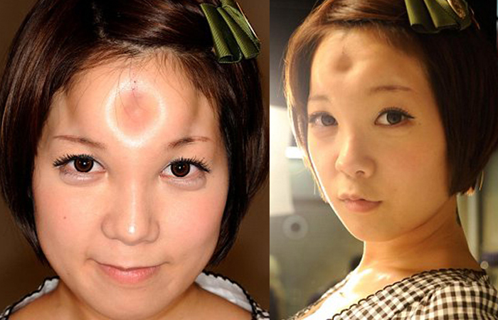 Пожалуй, самый непонятный тренд, который появился на улицах Японии, это «головы-пончики» или bagel-head. Модная тенденция появилась не так давно. Ее суть заключается в том, что молодое поколение обращается в салоны красоты, где им вводят раствор в область лба. Процедура безболезненная, но проводится только медицинскими специалистами. Спустя пару минут на лбу модницы появляется припухлость, которая напоминает пончик. Правда, держится он недолго — уже через 24 часа жидкость растворяется, и кожа на лбу снова разглаживается. Обладателям «пончика» нужно в течение дня успеть сфотографировать или выгулять свое новое украшение. Японцы с припухлым лбом похожи на пришельцев, но им такая внешность кажется максимально привлекательной.