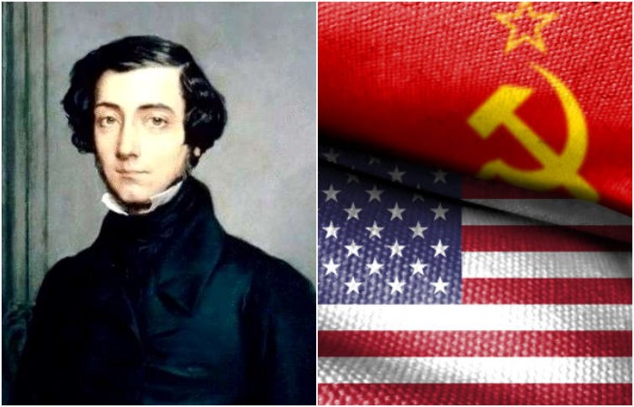 Казалось бы, предугадать даже крупные геополитические истории ХХ века, пребывая в ХІХ столетии попросту нереально, ведь после Первой мировой войны карта мира слишком радикально изменилась. Но французский политики и, как бы сейчас сказали, глава МИД Алексис де Токвиль ещё в 1831 году написал труд об Америке, где чётко предугадал - США в будущем схлестнётся в тяжкой битве за господство именно с Россией. К тому же, де Токвиль не только описывает сходства и различия двух народов, но и позиционирует их как великие, способные подмять под себя половину мира - фактически, это описание сверхдержав, США и СССР.