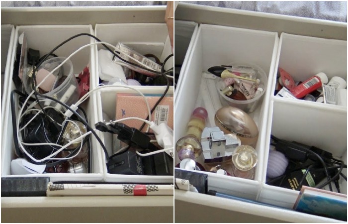 Если речь зашла о генеральной уборке, тогда обязательно следует проверить все ящики, которые есть в комнате. Это именно то место, где часто образуется свалка из проводов, косметики, книг, украшений, оберток от конфет и шоколадок…И это далеко не весь список. Но так быть не должно: пространство внутри ящиков создано для того, чтобы вы могли грамотно организовать хранение, а мусор, который там копится изо дня в день, мешает это сделать.