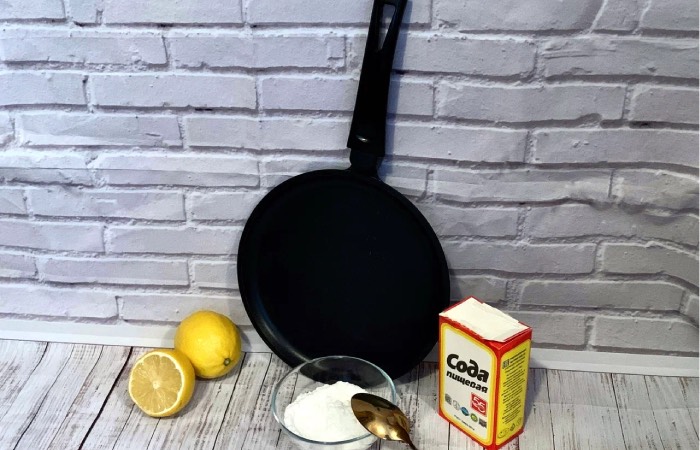 Речь снова идет о лимоне. Именно с его помощью можно экологично отмыть пригоревшую посуду. Для начала необходимо разрезать лимон пополам. После чего посыпать каждую половинку содой. Далее возьмите одну половинку и тщательно натрите пригоревший участок. Уже на этом этапе нагар начнет отходить. После чего мы рекомендуем промыть сковороду под проточной водой и продолжить обработку второй половиной лимона. Нагар точно уйдет без следа.