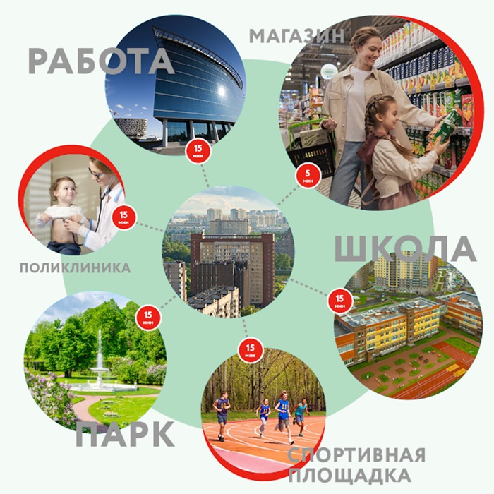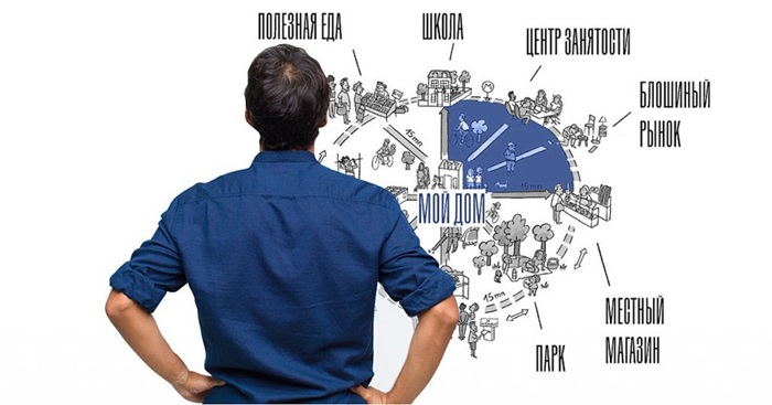 Для выполнения такой масштабной задачи город нужно условно разграничить на несколько зон и обустроить их так, чтобы они были автономными в плане инфраструктуры и доступности всех необходимых заведений. То есть, в каждом секторе будет располагаться нужный набор учебных заведений, больниц, парков и пеших зон, заведений для культурного отдыха и развлечений и так далее. Причём административные учреждения также должны существовать в каждой зоне.