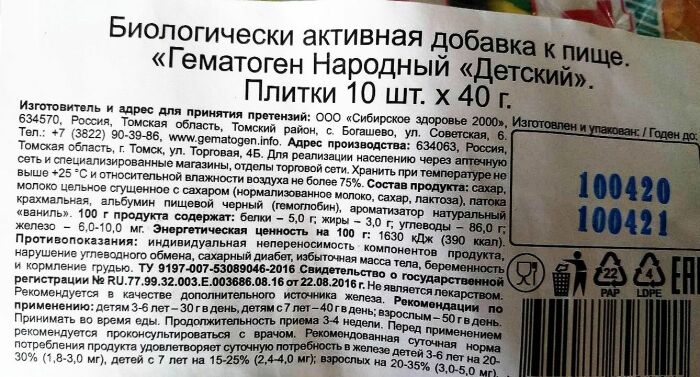 Стоит понимать, что есть как минимум два вида гематогена. Один из них относится к БАДам и в его составе есть та самая сухая бычья кровь. А второй – относится к лекарственной группе. Его состав отличается тем, что в нём вместо сухой бычьей крови присутствует сульфат железа, который усваивается гораздо лучше, чем тот самый альбумин.Современные специалисты рекомендуют есть гематоген в профилактических целях во время анемии, поскольку он хоть и ненамного, но всё-таки повышает уровень железа в крови. Однако, чтобы восполнить дефицит – необходимо принимать более серьёзные препараты.