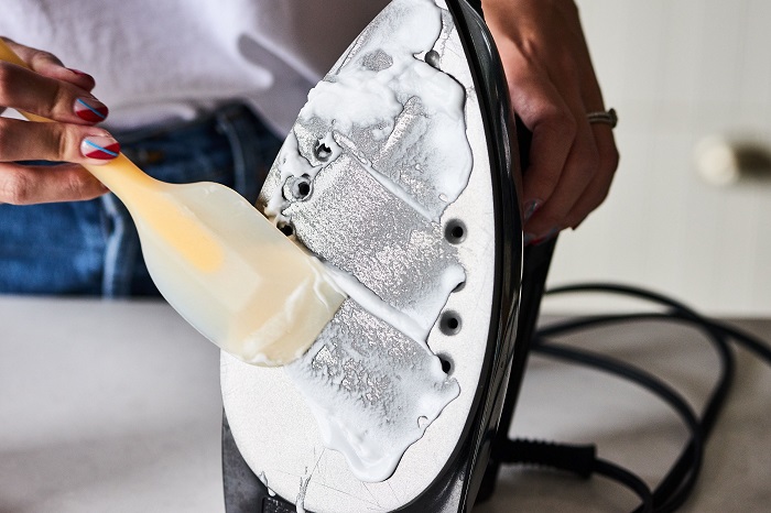 А вы знали, что зубной пастой можно чистить не только зубы, но и утюг? Если накипь поселилась не внутри, а снаружи, это средство отлично подойдет для ее устранения. Выдавите небольшое количество пасты на холодную подошву прибора, тщательно протрите ее тряпкой, равномерно распределяя средство по поверхности, а затем включите утюг на минимальную температуру, чтобы он слегка нагрелся – так загрязнения быстрее отойдут. В конце устраните остатки пасты и налета мягкой салфеткой и протрите подошву влажной тряпкой. Если же она очень грязная, сначала смешайте пасту с содой, а уже потом наносите на поверхность утюга.