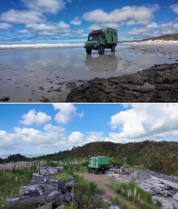 Один из популярнейших в мире внедорожников Mercedes-Benz' Unimog активно и более чем успешно используется в самых разных отраслях, от военных и пожарных машин до буксировочных тягачей, способных преодолеть даже самое безнадежное бездорожье. Благодаря своей универсальности, долговечности и непревзойденным внедорожным возможностям этот «зверь-автомобиль» оказался пригодным и для переоборудования в дом на колесах, идеально подходящий для любого вида приключений. Это доказала пара авантюристов Кайла и Луис – молодая пара из Новой Зеландии, которая давно мечтала посвятить свою жизнь путешествиям.