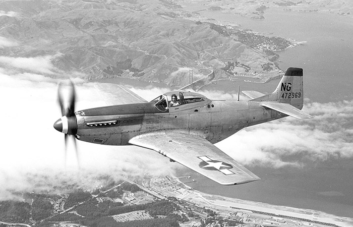 Истребитель сопровождения P-51D Mustang позволил американской авиации вести массированные налёты вглубь Германии. Его радиус действия позволял добраться до Берлина, а скорость порядка 700 километров в час сделала Mustang надёжным защитником бомбардировщиков и грозным противником для истребителей Люфтваффе. Благодаря хорошей аэродинамике и мотору Merlin, Mustang сохранял высокую скорость даже на больших высотах, а его вооружение из шести пулемётов калибра 12,7 мм позволяло уверенно вступать в бой как с одиночными истребителями, так и с бомбардировщиками. Пилоты ценили его за стабильность и послушность в управлении.