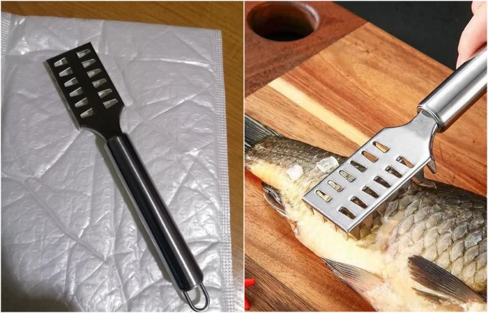На этот раз обойдемся без каламбура – перед вами действительно скребок для очистки чешуи практически всех видов рыб. Принцип действия интуитивно понятный: сидишь, рефлексируешь и… скребешь. И да, она тоже актуальна для современных хозяек или поваров.