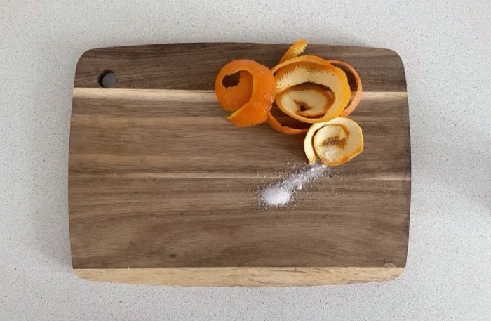 Разделочная доска является целым скопищем микробов и бактерий. Ее недостаточно просто вымыть, как другую посуду. Необходимо постоянно ее дезинфицировать. И сделать это можно с помощью натуральных ингредиентов. Речь идет, конечно же, об апельсиновых корках. Именно они помогут качественно очистить вашу разделочную доску.