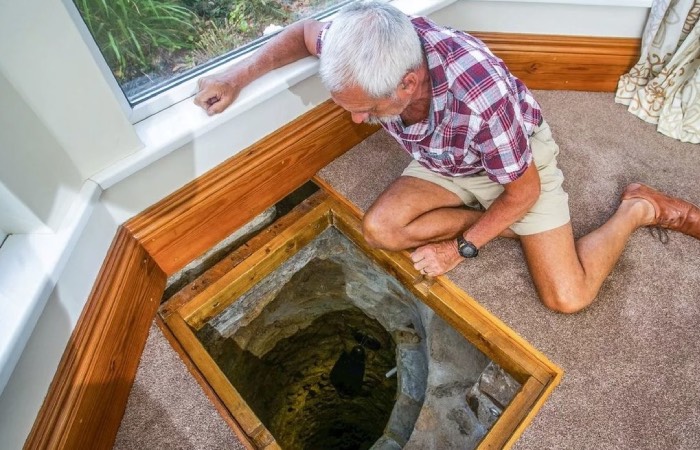 Дело было в конце двадцатого века в Великобритании. Мужчина средних лет приобрел себе самый обычный дом в графстве Девон. На полу в гостиной он заметил вмятину, но решил, что это следствие проседания грунта, что было не редкостью в данном районе. Однажды он решил проверить, что же находится под вмятиной, и был поражен своей находкой. Прямо посреди комнаты был старый колодец. По всей вероятности, им пользовались еще местные фермеры пять веков назад. Удивительно, но колодцем до сих пор можно было пользоваться. В нем остался метр чистой воды, которая была пригодна для питья. Удивительную находку владелец сохранил, хоть и прикрыл специальным перекрытием, чтобы никто не пострадал.