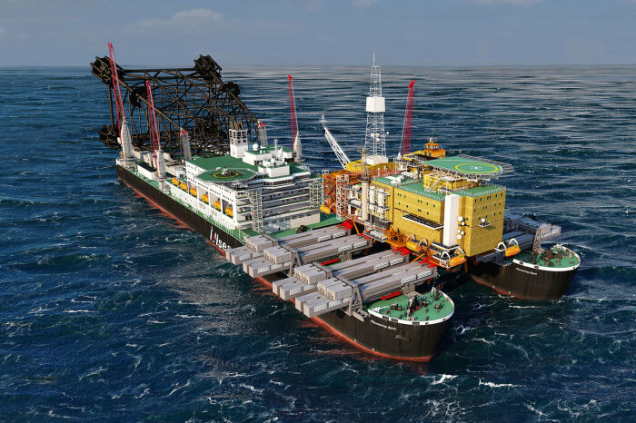 Огромное инженерное судно, предназначенное для установки и демонтажа нефтяных платформ. Также может использоваться для прокладки подводных трубопроводов. При длине в 382 метра и водоизмещении в 900 тысяч тонн оборудование Pioneering Spirit позволяет перевозить по морю нефтяные платформы буквально целиком. Разработано уникальное судно специалистами южнокорейской компании Daewoo. В свою очередь постройкой занимались специалисты из Нидерландов в одном из сухих доков Роттердама. В 2017 году Pioneering Spirit занимался прокладкой газопровода «Турецкий поток» для России. В 2018 и 2019 годах судно было задействовано на строительстве другой известной газоносной артерии – «Северный поток-2».