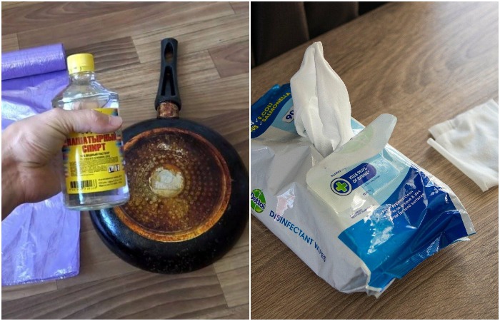 Обработайте сковороду нашатырем и накройте влажными салфетками
