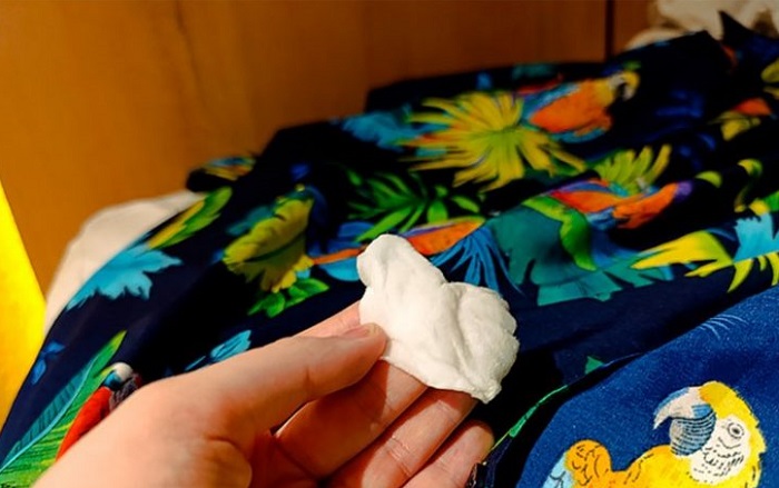 Если вы почувствовали, что из шкафа доносится неприятный запах, а никакого саше для ароматизации под рукой не оказалось, попробуйте использовать вместо него обычные влажные салфетки. В чем состоит эффективность этого лайфхака? Салфетки проспиртованы и обладают приятным ароматом, благодаря чего они могут на дольше сохранить свежесть постиранных вещей.