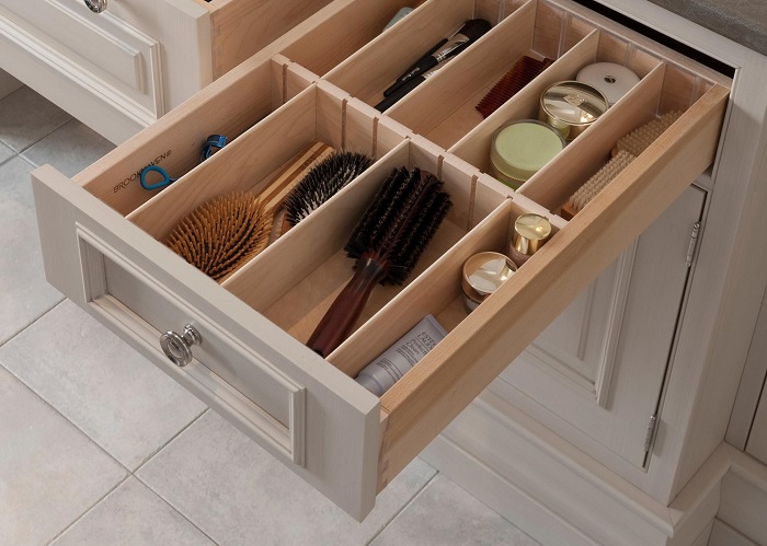 Решить эту проблему можно при помощи обычных органайзеров и разделителей. Сначала распределите предметы по категориям, сложите их в контейнеры, а уже потом складывайте в ящики. Кстати, такой способ хранения упрощает не только поиск вещей, но и дальнейшую уборку – достаточно будет вытащить несколько органайзеров, а затем просто поставить их обратно. А вот выгребать из ящика кучу мелких предметов вы вряд ли захотите – в результате грязь и мусор будут копиться с бешеной скоростью.