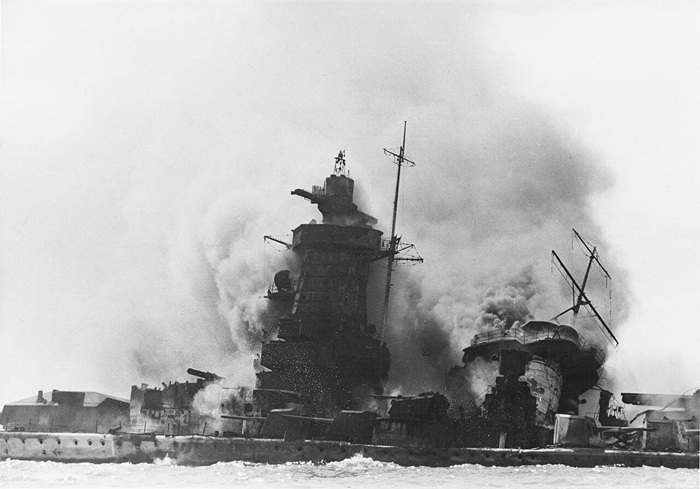 Пожар на затопленном крейсере, декабрь 1939 года. /Фото: uk.wikipedia.org