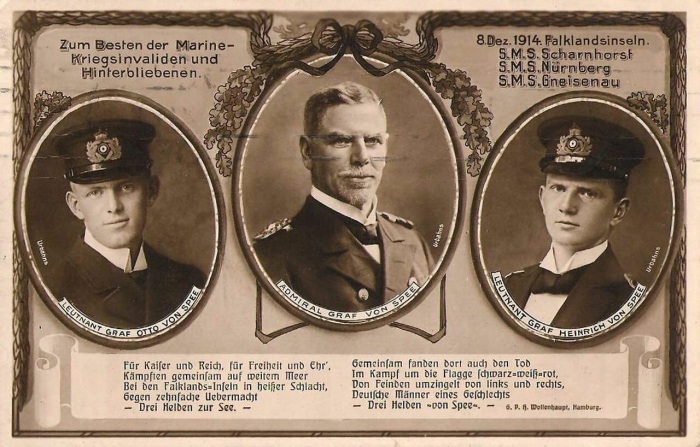 Воевал дворянин в звании вице-адмирала как командующий Восточно-Азиатской крейсерской эскадрой, и на первых порах он имел довольно громкие успехи - например, именно под его руководством немцы разбили англичан во главе с контр-адмиралом Крэдоком осенью 1914 года. Вот только чуть больше, чем через месяц удача отвернулась от фон Шпее: в водах Фолклендских островов восемь его эскадра была ликвидирована всё теми же британцами, а сам командующий, как и двое его наследников, погибли.