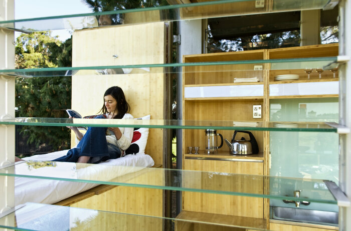Достаточно открыть боковую дверь, чтобы появились места для отдыха, сна и чтения (Port-a-Bach, Новая Зеландия). | Фото: ecology.md.